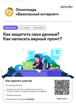 Все желающие могут принять участие в олимпиаде «Безопасный интернет». Эта олимпиада — отличная возможность проверить свои знания в области интернет-безопасности, научиться защищать свою личную информацию и правильно пользоваться сетевыми ресурсами.